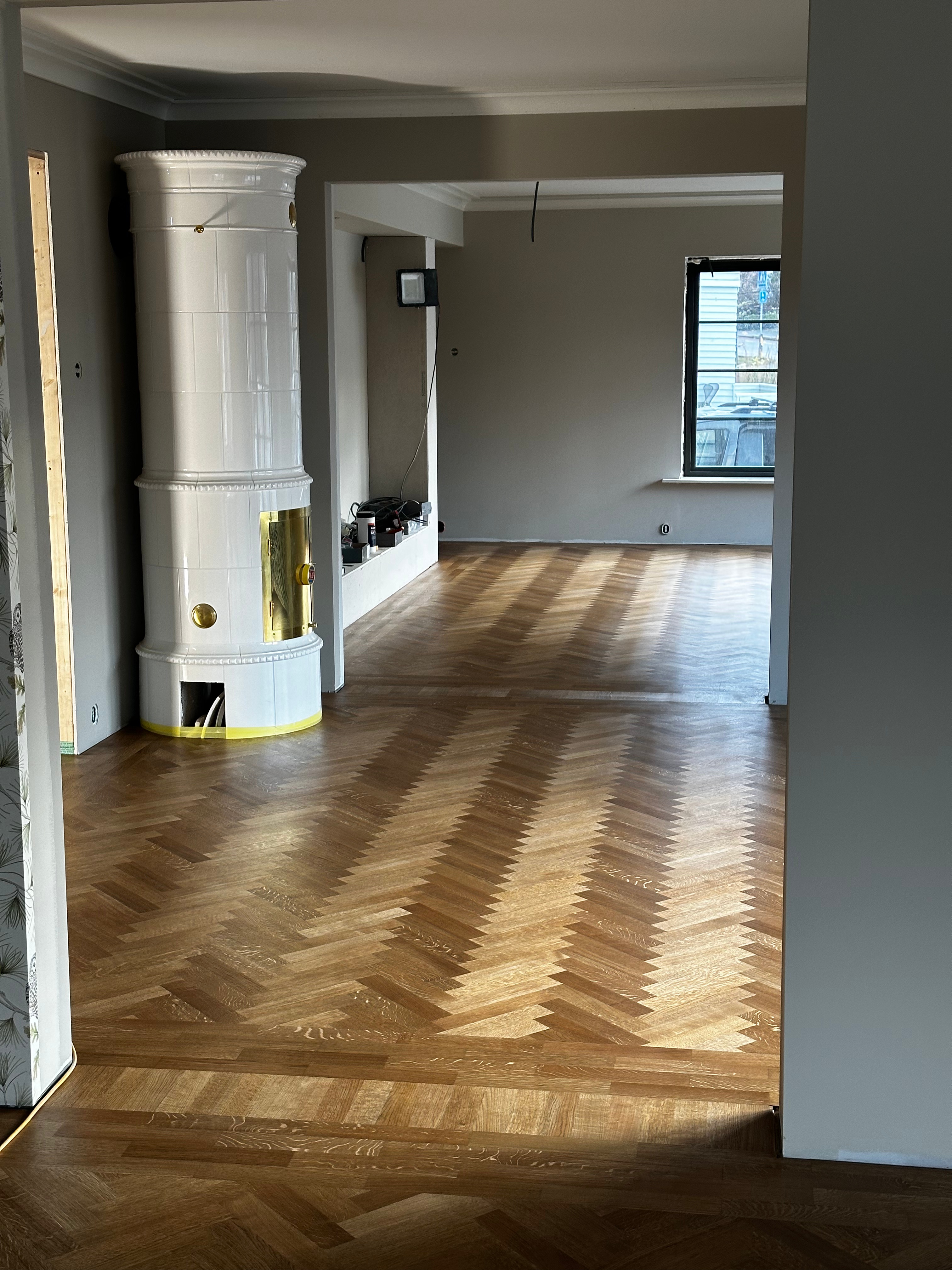 For de som ønsker et ekstra slitesterkt gulv, tilbyr vi 2 strøk med Bona Traffic 2-komponents vannbasert lakk. Her kan man velge mellom ekstra- eller ultra-matt lakk for et veldig naturlig preg, selv på et lakkert gulv.